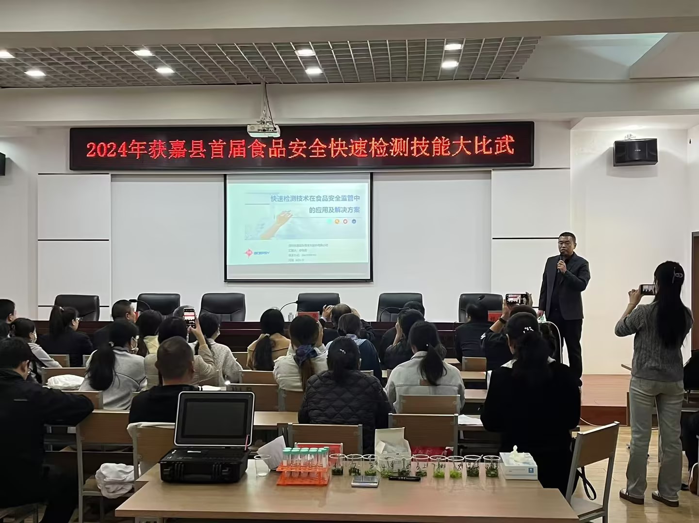 10月24日,,,,,,获嘉县2024年首届食物清静快检手艺大交锋运动在获嘉县市场监视治理局拉开序幕,,,,,,来自市场羁系、农贸市场、大型商超、学校食堂等40余名食物清静快速检测选手加入了本次运动。。。。。。